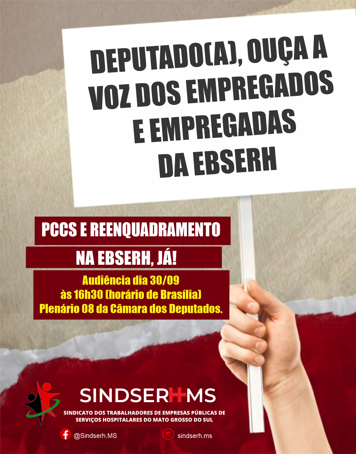 Contamos com sua presença na próxima terça-feira, 30, onde a Comissão de Administração e Serviços Públicos da Câmara dos Deputados realizará audiência pública para debater a necessidade de reestruturação, enquadramento, valorização e fortalecimento da carreira dos empregados públicos da EBSERH.