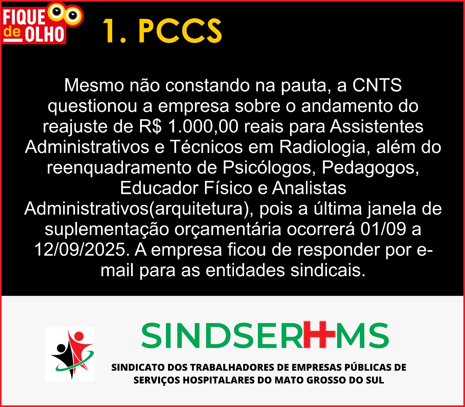 Iniciando a reunião, a EBSERH apresentou o relatório de Pesquisa de Satisfação dos Usuários atendidos nos Hospitais Universitários Filiados. O índice de satisfação foi de 91,55%, onde os itens mais bem avaliados foram do atendimento prestado pelos trabalhadores. Os representantes da CNTS manifestaram que esse relatório é muito importante, mas que é preciso realizar a pesquisa de clima organizacional com os trabalhadores para fazer esse paralelo, pois a última pesquisa foi realizada pela administração anterior, onde o resultado sequer foi divulgado.